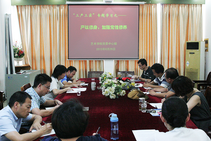 6月29日下午3:00-6:00,晚7:30-10:00,我院党委中心组(全体院领导班子、院党委委员、各教工党支部书记)全体成员于美术楼203分时段开展“三严三实”第一次专题学习活动。