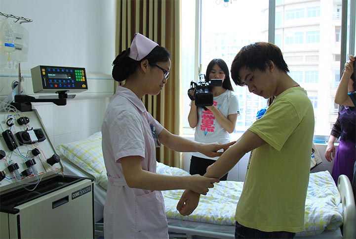 抽取造血干细胞的过程长达5小时。艺术学院党委书记张琳一早就带着几位老师陪着杨湖广:“他是个很善良、很勇敢的学生,我也很佩服他的善举。”杨湖广说,老师们的陪同,让自己放松很多。