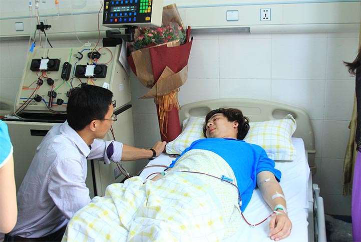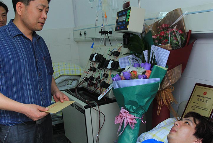 期间,中华骨髓库湖南分库主任何一平等人都来探望杨湖广,鲜花、奖状、证书摆满了病房,杨湖广始终笑得羞涩腼腆。