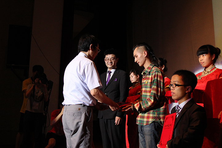 从19个学院、近两万名男生中遴选的9位优秀男生用自己的实际行动奏响了这个时代青春的最强音。作为本次报告会的压轴,我院邹文迪与大家分享了自己“始终相信努力奋斗的意义”的心路历程。他一直怀揣着自己的艺术梦,用自己的坚韧与执著冲破一次次逆境的枷锁,也正是因为不断付出与努力,他开始绽放出自己的光芒。最开始让我们熟知他的便是“七彩年华”系列迎新晚会:大一时提出了“七彩年华”主题并在几年内把它做到全校闻名,更是亲自编排并参与了连续三年的书法开场,负责制作了四年的开场视频。值得一提的是,其中大四拍摄的《追忆十年》仅在优酷点击率就已超过20万,并且受到了湖南卫视片头包装制作人贺丹青老师的大力赞扬和支持。此外,邹文迪还为本次汇报会导演并拍摄了MV《我最闪亮》和9位汇报人的个人微电影。